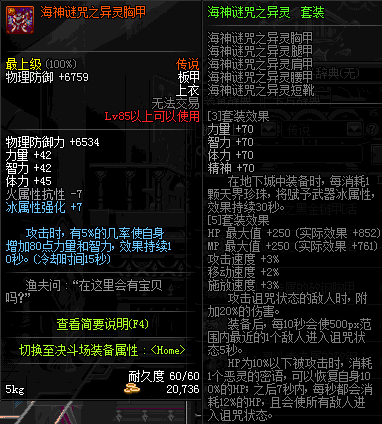 | 85 | 海神谜咒之异灵胸甲 | *昨日之巴斯顿 掉落 (在远古地下城里出没。) *从NPC鲁特的物品店出售的[海神谜咒防具礼盒]中获得 *船长鲁特 出售 (深海诅咒 : 解咒法×600) |
