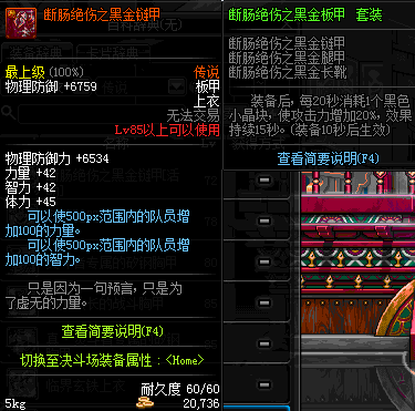 | 85 | 断肠绝伤之黑金链甲 | *昨日之巴斯顿 掉落 (在远古地下城里出没。) *从NPC鲁特的物品店出售的[断肠绝伤防具礼盒]中获得 *任务奖励(地下城:比尔马克帝国试验场 NPC娜塔莉娅·休勒) |