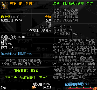 | 55 | 圣物 :控魂女神的钛钢胸甲 | *Lv53~61普通地下城怪物掉落 |