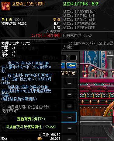 | 75 | 圣堂骑士的赦令胸甲 | *Lv74~81深渊地下城怪物掉落 | 圣堂骑士的神谕 套装 | |