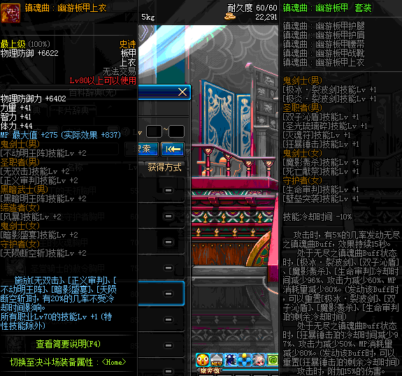 | 80 | 镇魂曲:幽游板甲上衣 | *Lv79~86深渊地下城怪物掉落 | 镇魂曲 : 幽游板甲 套装 | |