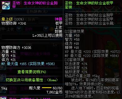 | 35 | 圣物 :生命女神的钛合金胸甲 | *Lv34~41普通地下城怪物掉落 |