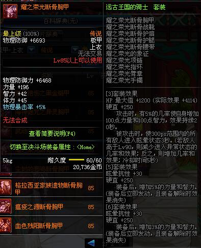 | 85 | 耀之荣光断骨胸甲 | *昨日之巴斯顿 掉落 (在远古地下城里出没。) *从NPC鲁特的物品店出售的[耀之荣光防具礼盒]中获得 |