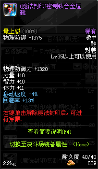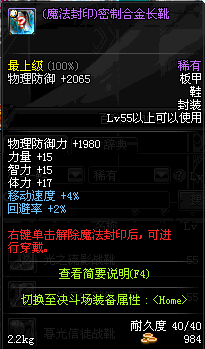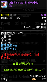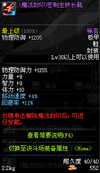 | 55 | (魔法封印)密制合金长靴 | *Lv53~61普通地下城怪物掉落 *完成[消灭邪龙]任务 *使用Lv53~61怪物掉落的设计图进行制作 |