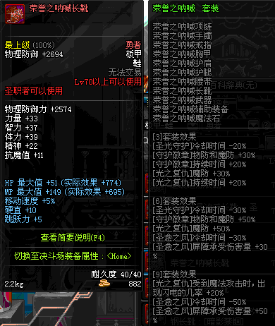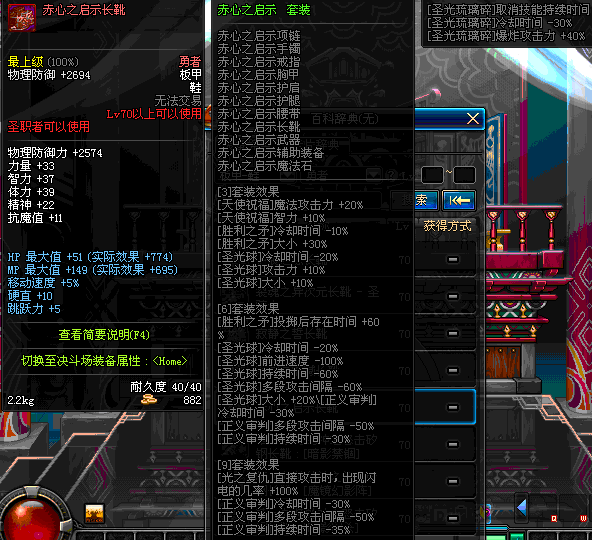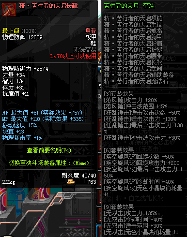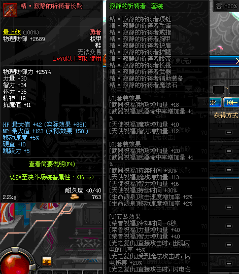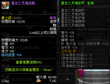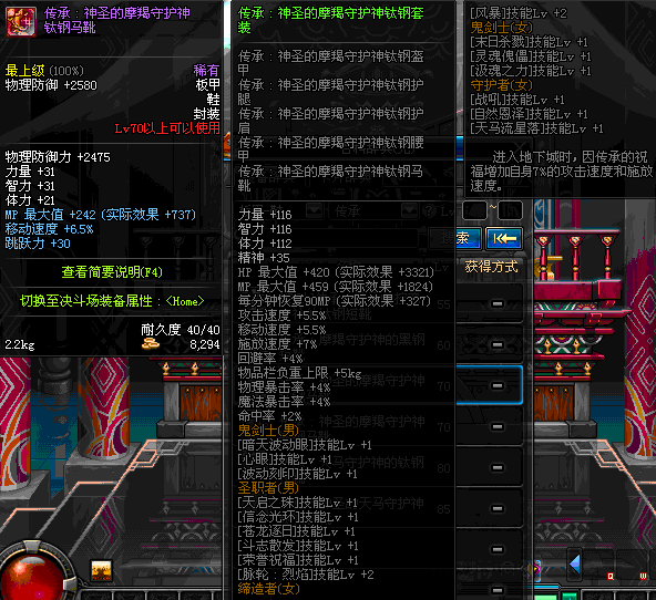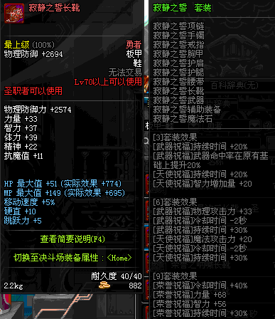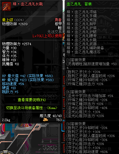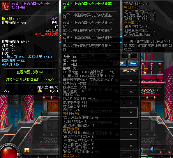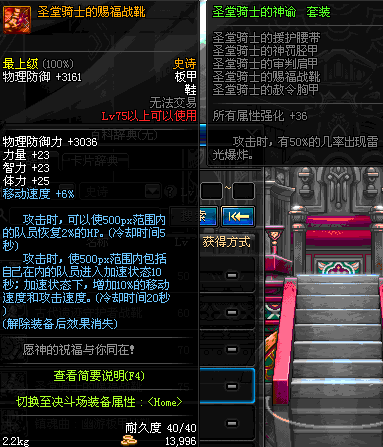 | 75 | 圣堂骑士的赐福战靴 | *Lv74~81深渊地下城怪物掉落 | 圣堂骑士的神谕 套装 | |