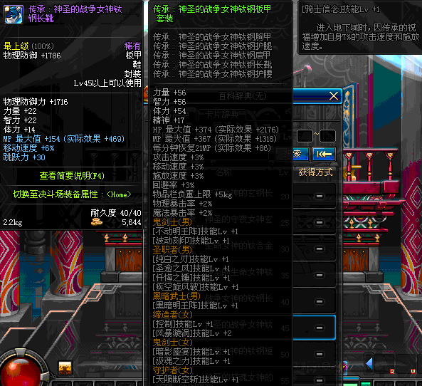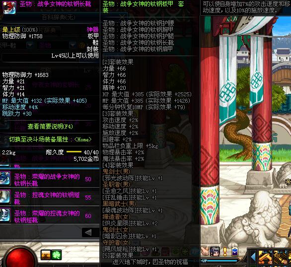 | 45 | 圣物 :战争女神的钛钢长靴 | *Lv45~51普通地下城怪物掉落 |