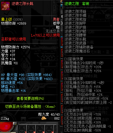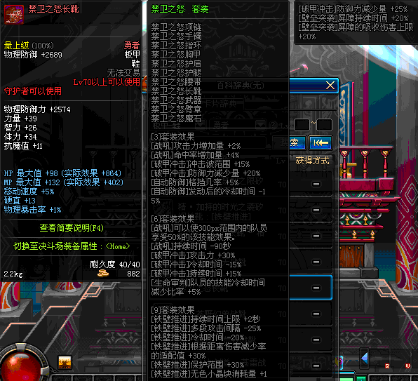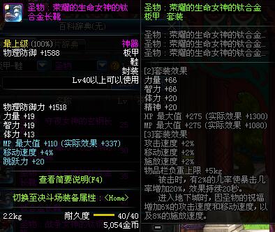 | 40 | 圣物 :荣耀的生命女神的钛合金长靴 | *Lv39~46普通地下城怪物掉落 |