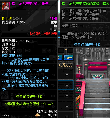 | 76 | 真 · 尼尔巴斯的钛钢长靴 | *设计图(70LV以上普通地下城 登场的NPC加百利 出售) *尼尔巴斯的钛钢长靴 → 用远古神器装备进化书升级(NPC船长鲁特 出售) |