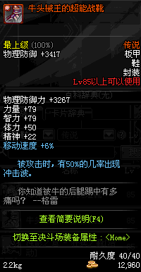 | 85 | 牛头械王的超能战靴 | *牛头械王 掉落(比尔马克帝国试验场 6图) *设计图(比尔马克帝国试验场 登场的NPC加百利 出售) |