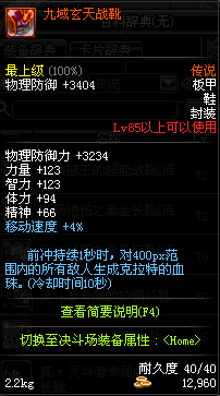 | 85 | 九域玄天战靴 | *守门将克拉特 掉落(擎天之柱 4图) *设计图(擎天之柱 登场的NPC加百利 出售) |