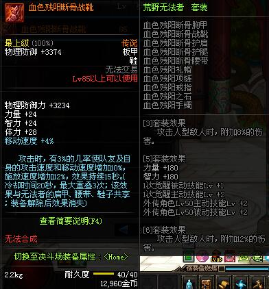 | 85 | 血色残阳断骨战靴 | *昨日之巴斯顿 掉落 (在远古地下城里出没。) *从NPC鲁特的物品店出售的[血色残阳防具礼盒]中获得 |
