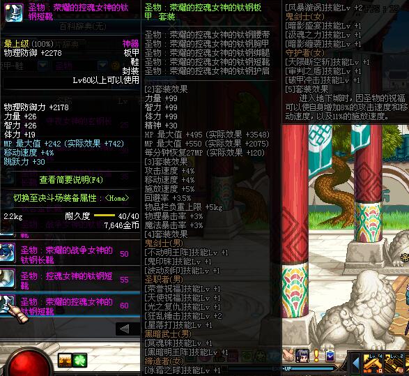 | 60 | 圣物 :荣耀的控魂女神的钛钢短靴 | *Lv58~66普通地下城怪物掉落 |