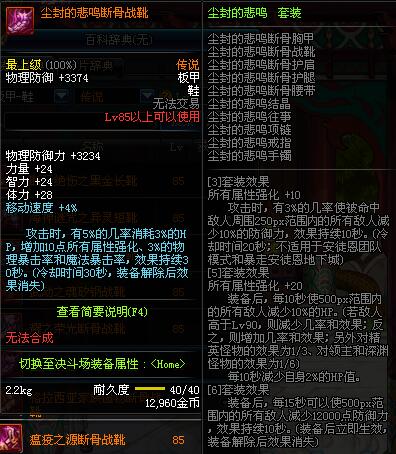 | 85 | 魔战无双短靴 | *Lv84~91深渊地下城怪物掉落 | 魔战无双 套装 | |