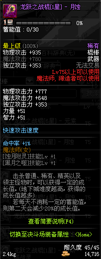 | 75 | 龙跃之战棍[4星] – 月蚀 | *完成二次觉醒任务后可以从NPC小铁柱处获得此道具。 | ||
