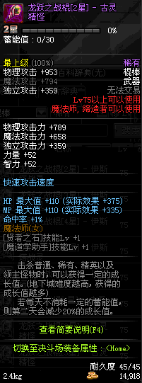| 75 | 迅影流星长棍 | *Lv75~81普通地下城怪物掉落 *在加百利的神秘商店购买 |
