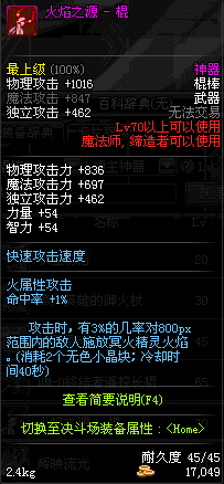 | 70 | 火焰之源 - 棍 | *兽王 乌塔拉 掉落(地下城: 格兰之火) *在NPC西岚的物品店购买(银色陨石×495) |