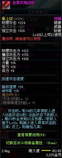 | 45 | 圣物 : 冥火精灵之水晶长棍 | *Lv45~51普通地下城怪物掉落 |