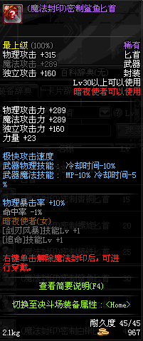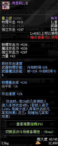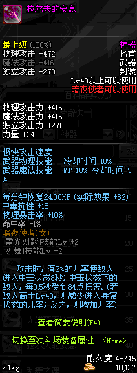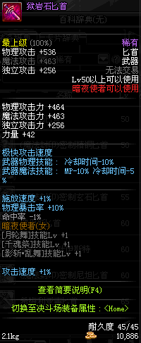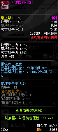 | 35 | 无边落雨匕首 | *Lv34~41普通地下城怪物掉落 *在加百利的神秘商店购买 |