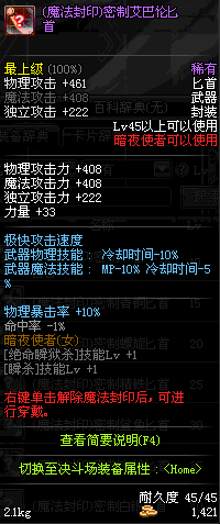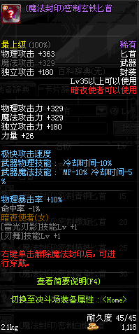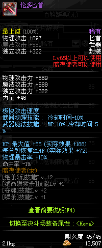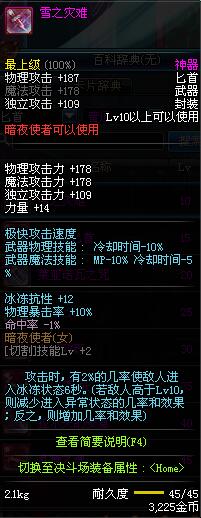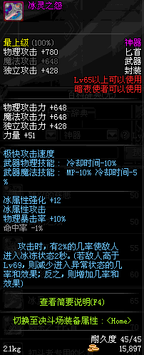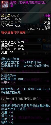 | 45 | 圣物 : 玄冰精灵的爱巴伦匕首 | *Lv45~51普通地下城怪物掉落 |