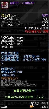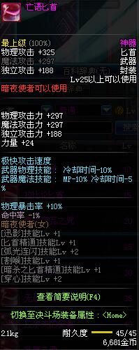| 25 | 亡语匕首 | *Lv24~31普通地下城怪物掉落 *在加百利的神秘商店购买 |