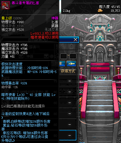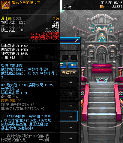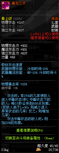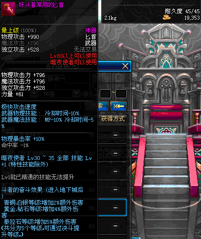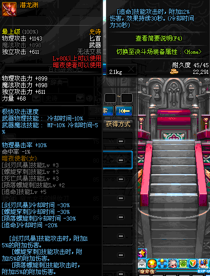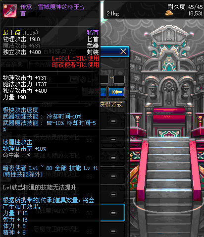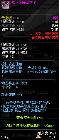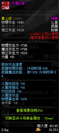 | 80 | 天蚕匕首 | *Lv80~86普通地下城怪物掉落 *在加百利的神秘商店购买 |