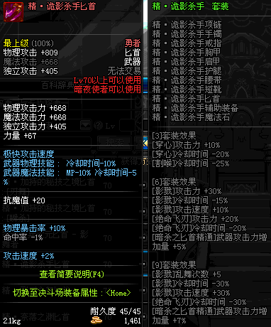 | 70 | 刺杀之王匕首 | *Lv70~76普通地下城怪物掉落 *在加百利的神秘商店购买 |