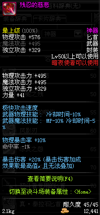 | 50 | 残忍的慈悲 | *Lv50~56普通地下城怪物掉落 *在加百利的神秘商店购买 |