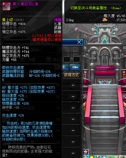 | 72 | 真·泰拉石匕首 | *设计图(70LV以上普通地下城 登场的NPC加百利 出售) *泰拉石匕首 → 用远古神器装备进化书升级(NPC船长鲁特 出售) |