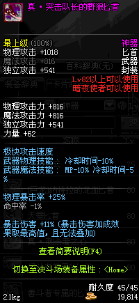 | 82 | *设计图(70LV以上普通地下城 登场的NPC加百利 出售) *突击队张的野狼匕首 → 用远古神器装备进化书升级(NPC船长鲁特 出售) |