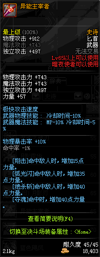 | 65 | 异能主宰者 | *Lv64~71深渊地下城怪物掉落 *在NPC沉默之克雷娅的物品店购买 |