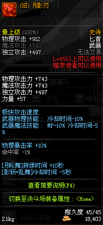 | 65 | (旧)月影刃 | *Lv64~71深渊地下城怪物掉落 *在NPC沉默之克雷娅的物品店购买 |