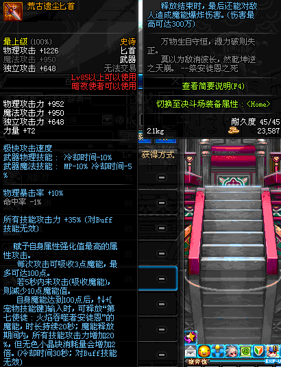| 85 | 镇魂之封灵匕首 | *时空之门地区 - 吟游诗人艾丽丝 出售 (镇魂之石×100) *购买镇魂武器礼盒(低级镇魂之石×140) |