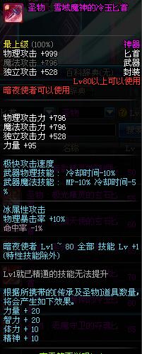 | 80 | 圣物 : 雪域魔神的冷玉匕首 | *Lv80~86普通地下城怪物掉落 | ||