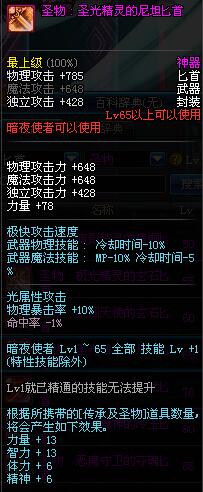 | 65 | 圣物 : 圣光精灵的尼坦匕首 | *Lv65~71普通地下城怪物掉落 |