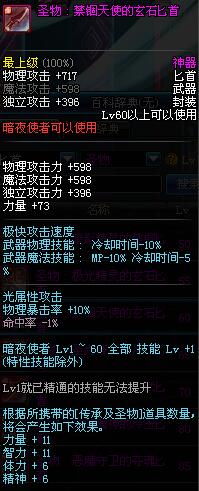 | 60 | 圣物 : 禁锢天使的玄石匕首 | *Lv58~66普通地下城怪物掉落 |