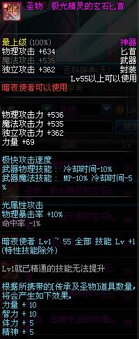 | 55 | 圣物 : 极光精灵的玄石匕首 | *Lv53~61普通地下城怪物掉落 |