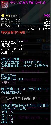 | 35 | 圣物 : 幻象天使的玄铁匕首 | *Lv34~41普通地下城怪物掉落 |