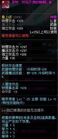 | 25 | 圣物 : 炽焰天使的精铜匕首 | *Lv24~31普通地下城怪物掉落 | ||