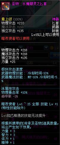 | 15 | 圣物 : 水魔碧灵之匕首 | *Lv13~21普通地下城怪物掉落 |