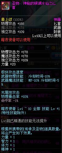 | 10 | 圣物 : 神秘的银湖水仙之匕首 | *Lv8~14普通地下城怪物掉落 |