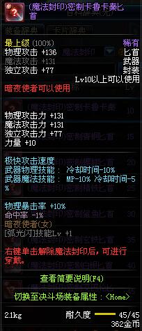 | 10 | (魔法封印)密制卡鲁卡秦匕首 | |||