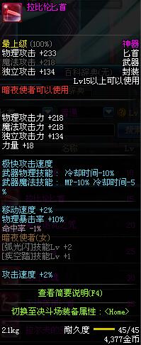 | 15 | 拉比伦匕首 | *Lv13~21普通地下城怪物掉落 *在加百利的神秘商店购买 |