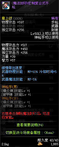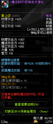 | 35 | (魔法封印)密制老式猎枪 | *Lv34~41普通地下城怪物掉落 |