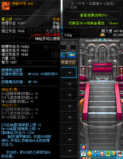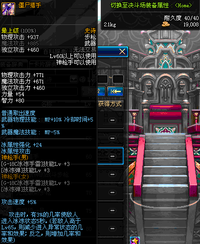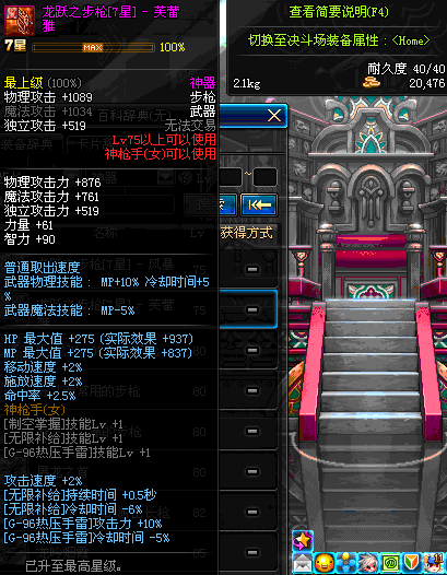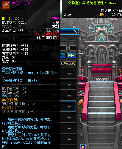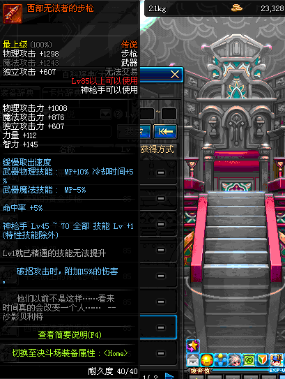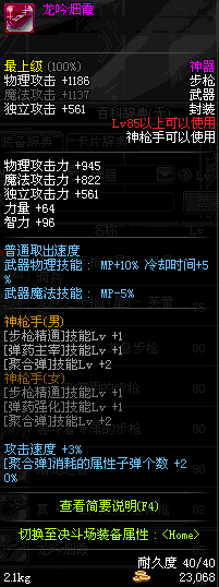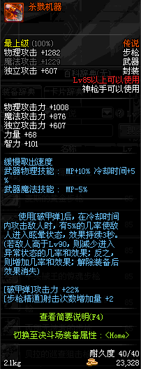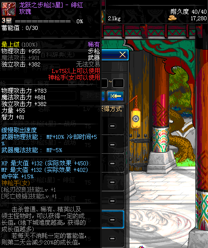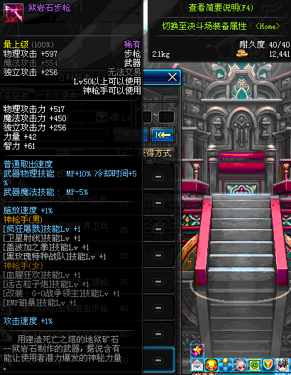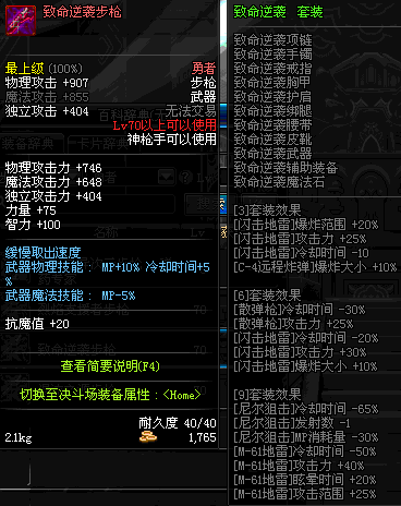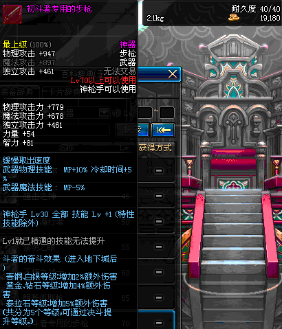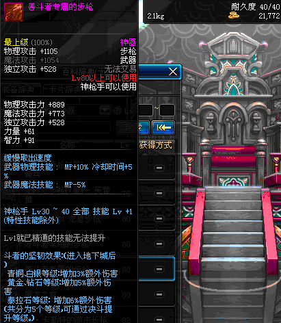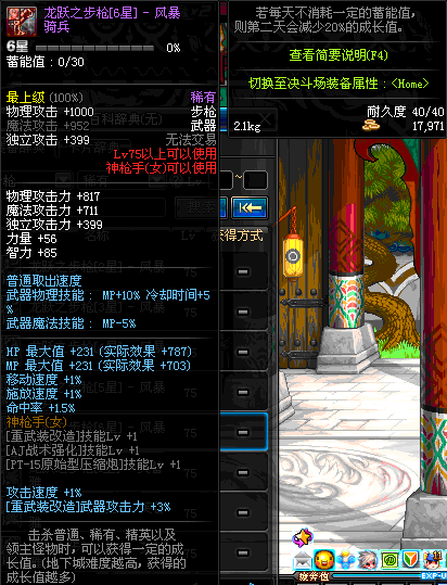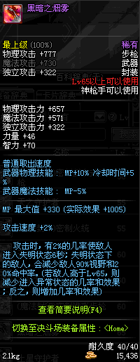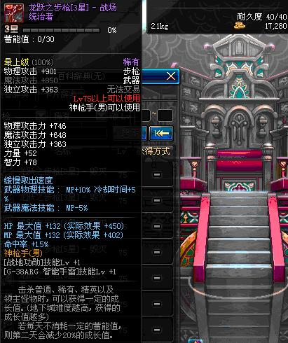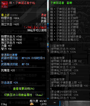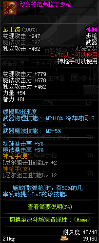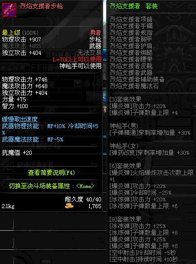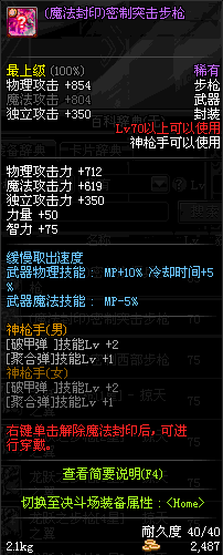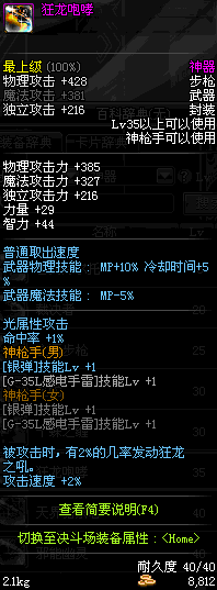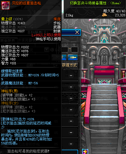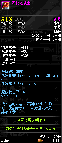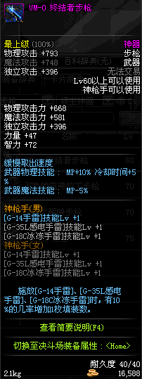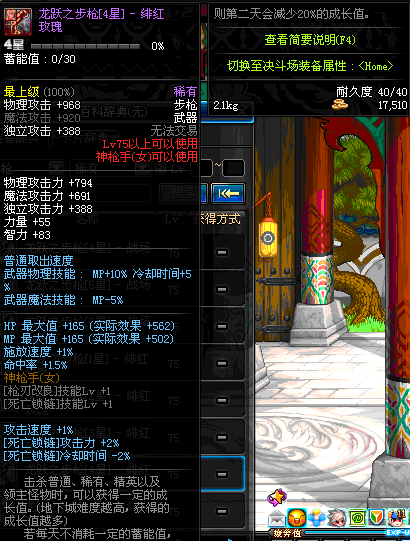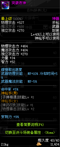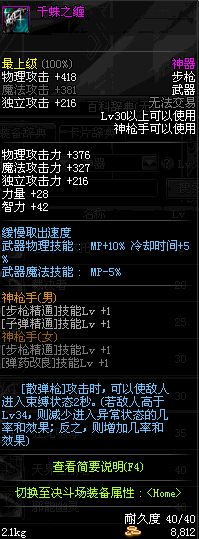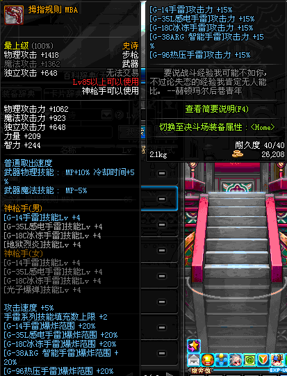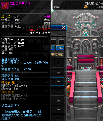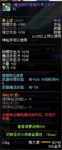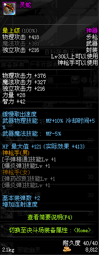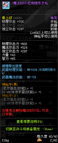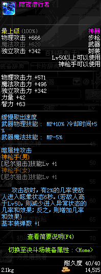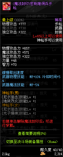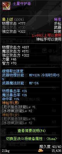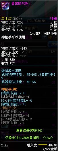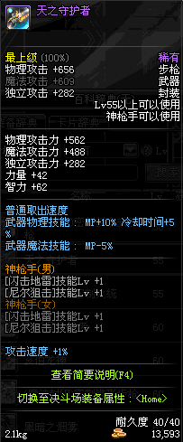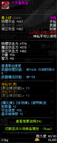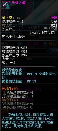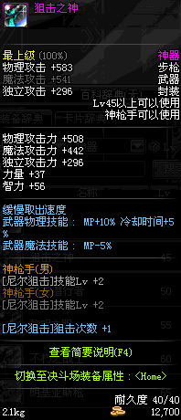| 45 | 狙击之神 | *Lv45~51普通地下城怪物掉落 *在加百利的神秘商店购买 |