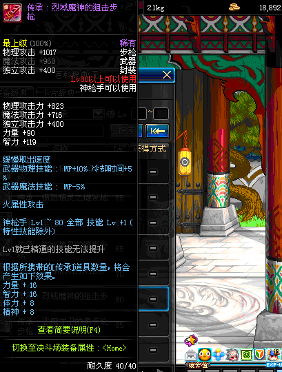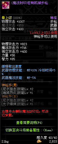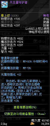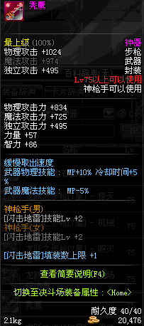 | 80 | (魔法封印)密制机械步枪 | *Lv80~86普通地下城怪物掉落 |