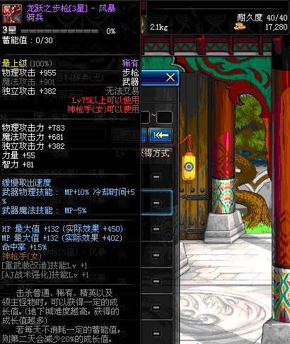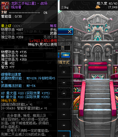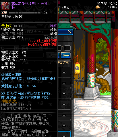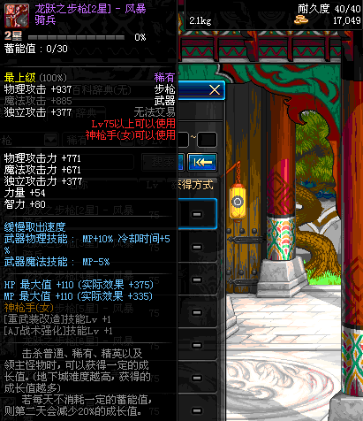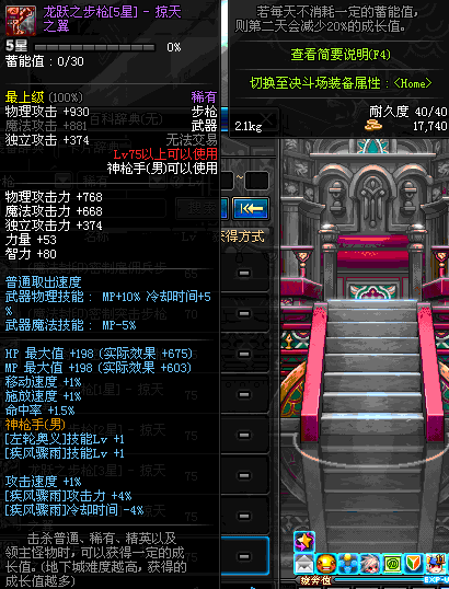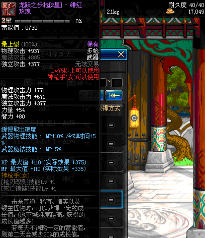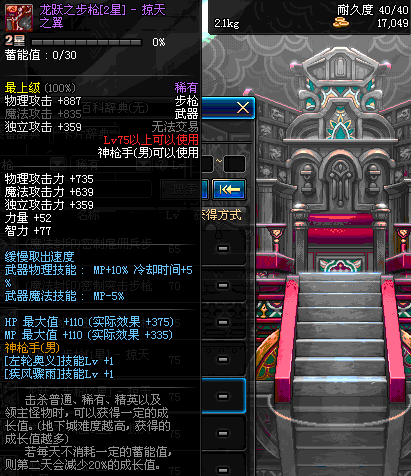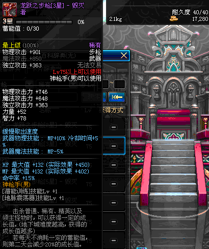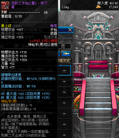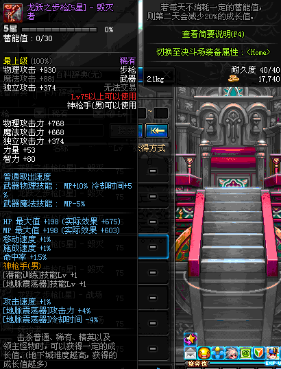 | 75 | 龙跃之步枪[2星] – 毁灭者 | *完成二次觉醒任务后可以从NPC小铁柱处获得此道具。 | ||