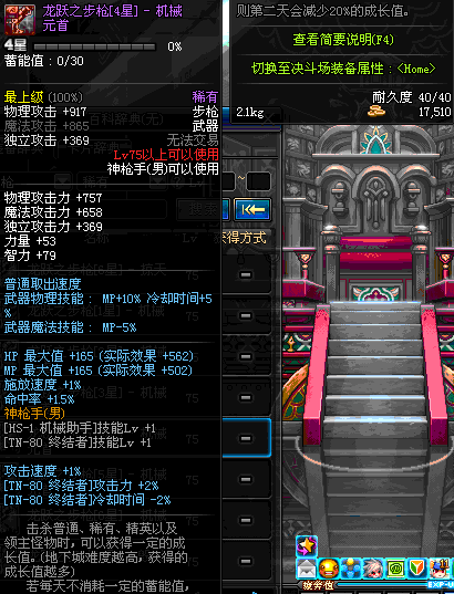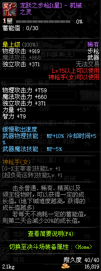 | 75 | 龙跃之步枪[1星] – 机械之灵 | *完成二次觉醒任务后可以从NPC小铁柱处获得此道具。 | ||