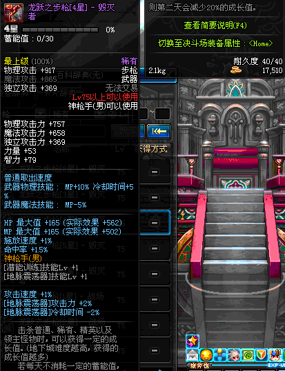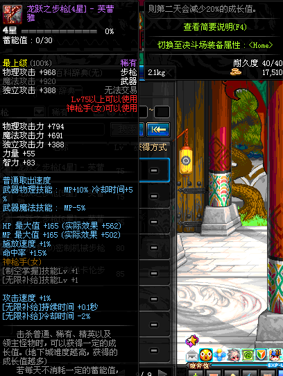 | 75 | 龙跃之步枪[4星] – 毁灭者 | *完成二次觉醒任务后可以从NPC小铁柱处获得此道具。 | ||