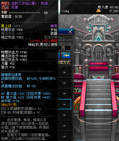 | 75 | 龙跃之步枪[3星] – 机械之灵 | *完成二次觉醒任务后可以从NPC小铁柱处获得此道具。 | ||