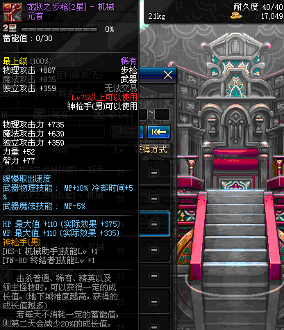 | 75 | 龙跃之步枪[2星] – 机械之灵 | *完成二次觉醒任务后可以从NPC小铁柱处获得此道具。 | ||